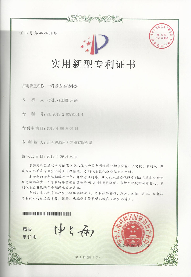 反應(yīng)釜攪拌器專利